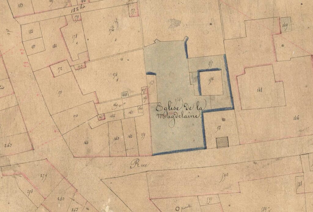 Un point en particulier a préoccupé le groupe lors de sa visite. Il concerne les deux ailes du bâtiment qui constituent aujourd’hui le 42 rue de la Madeleine. En effet, si elles sont présentes sur le plan La Roche au XVIIIe siècle, elles sont absentes sur le cadastre napoléonien postérieur. De même, l’aile arrière semble avoir un léger décrochement par rapport au cloître sur la première carte, décrochement qui ne correspond pas au bâtiment actuel.